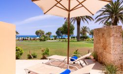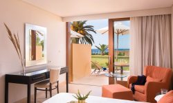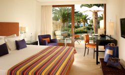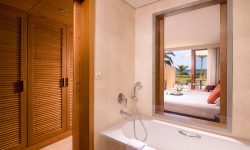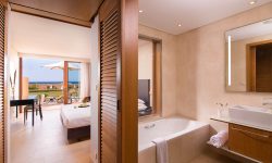 Located in the bungalow area, offering splendid sea view with a fully furnished terrace with sunbeds and umbrella and consist of one spacious bedroom with a king size bed or twin beds, sitting area with writing desk. The bathroom features a telephone, bathtub offering sea view through the glass wall and separate shower cabin. Some of the Superior Bungalows Sea View have the possibility to connect with a second Superior Bungalow, perfect for larger groups or families.